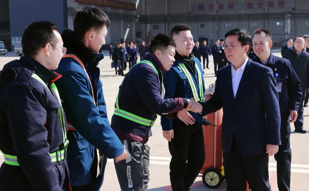 在“鲲龙”AG600适航取证试飞一线,为顺利完成型号适航取证目标,春节期间平均每天约有500名员工到岗工作。魏应彪一行在民机试飞中心慰问坚守在一线的干部职工并向大家表示感谢。他强调,AG600适航取证任务已经到了最后关头,研制团队要强化资源配置,抓实计划管控,压实主体责任,落实局方审定意见,推动型号如期取证,坚定完成党和国家赋予我们的使命任务,为建设我国应急救援和国家自然灾害防治体系贡献航空力量。